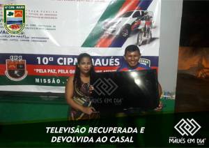 Na noite de quinta-feira (06), o Comando da Policia Militar 10ª CIPM Maués Guardiões do Guaraná recebeu uma denúncia via linha direta, que um homem havia furtado uma televisão de um casal de dentro da residência.