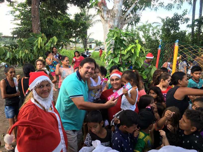 MAUÉS (AM) – Na manhã desta segunda-feira (24), o ex-deputado Alfredo Almeida na companhia de seu Filho sob a organização de Leida e equipe, realizaram o Natal das Crianças da Invasão Nova Esperança zona sul da cidade de Maués. As crianças acompanhadas de seus familiares receberam presentes.
