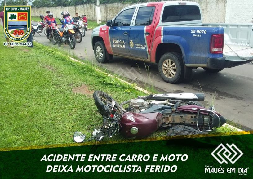 MAUÉS (AM) – Na tarde da segunda-feira (24), o Comando da Policia Militar 10º CIPM Maués Guardiões do Guaraná recebeu uma denúncia via populares informando que um carro e uma moto haviam colidido na Estrada dos Moraes na divisa dos bairros Santa Luzia e Santa Tereza zona sul da cidade, e que o motociclista ficou ferido. Equipes do DEMUT estiveram no local para evitar que mais acidentes pudessem acontecer.