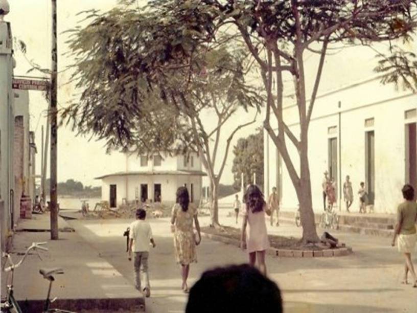 Vista do inicio da Avenida do Dr. Pereira Barreto em direção ao porto de Maués na década de 1960, a direita o antigo prédio da Cadeia Pública, atualmente no local foi erguido o prédio da Agência do Banco do Brasil. Foto Arquivo do Professor Alcinei Pimentel Carneiro – Folha de Maués.
