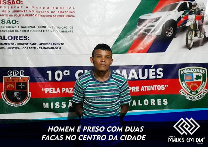 Segundo informações dos policiais militares, o mesmo estaria com duas facas em sua cintura, o acusado foi abordado e durante a revista foi encontrada as duas Armas Brancas o mesmo foi conduzido ao Comando da Policia Militar de Maués 10ª CIPM Guardiões do Guaraná sem Hematomas e sem Escoriações onde foram feitos os procedimentos legais e logo em seguida foi encaminhado a 48ª Delegacia Interativa da Policia Civil de Maués onde permanecerá preso e ficará à disposição da Justiça.