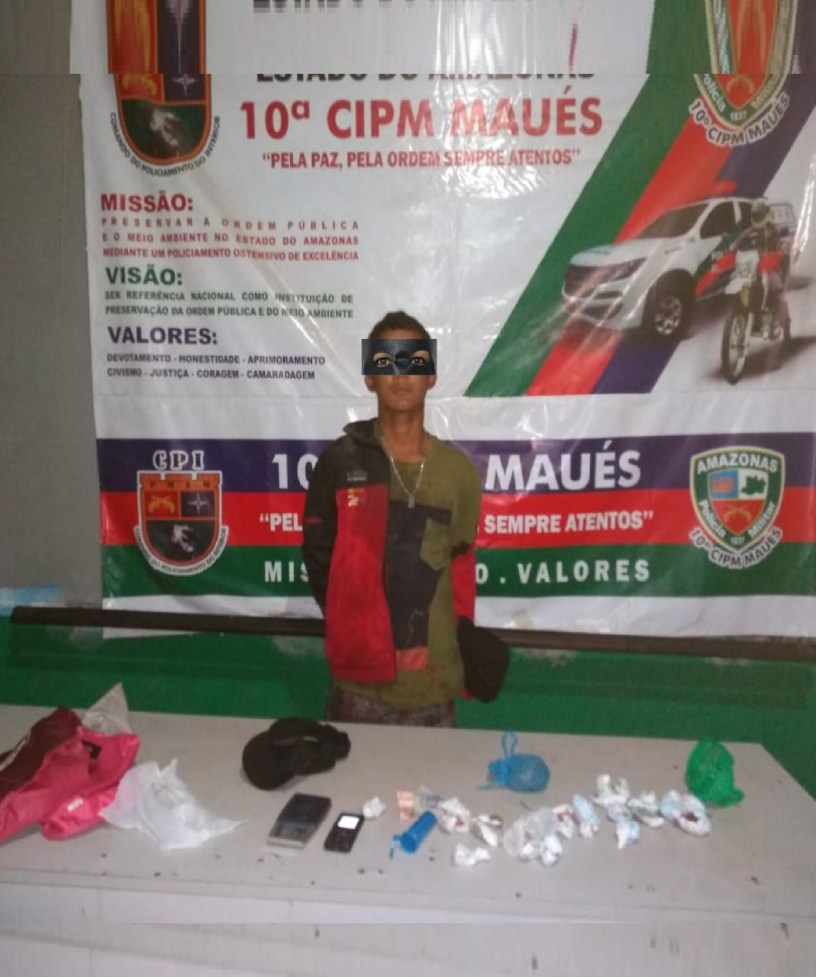FOLHA DE MAUÉS (AM) – Segundo informações da 10ª COPMPANHIA INDEPENDENTE DA POLÍCIA MILITAR DE MAUÉS (CIPM), nesta terça-feira (16) por volta das 17h00, a Guarnição de serviço composto pelo 2Sgt G.silva e Cb guerreiro e Cb kedson efetuou a detenção do menor infrator C. B. DA S. (16). De acordo com a Equipe de Inteligência da 10ª CIPM MAUÉS a detenção foi realizada nas proximidades do bairro São Domingos (Torre da Vivo) zona leste da cidade, após levantamentos, o mesmo é acusado de comercializar entorpecentes (maconha) 22 porções na referida região da cidade.