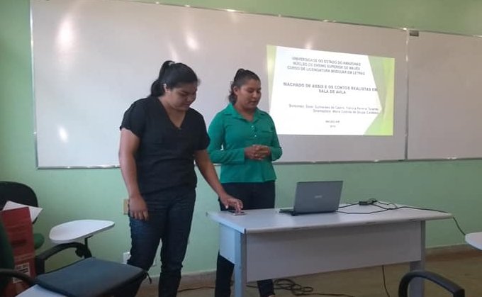 FOLHA DE MAUÉS (AM) – Neste domingo (28), está ocorrendo a Apresentação do Projeto de Extensão Universitária, “Os contos de Machado de Assis e os contos realista em sala de aula” tendo como orientadora a professora Celeste Cardoso do Centro de Estudo Superior de Parintins da Universidade do Estado do Amazonas (UEA), desenvolvido junto aos Acadêmicos do Curso de Licenciatura em Letras do Núcleo de Ensino Superior de Maués – NESMAU, nas escolas Públicas da Terra do Guaraná, tendo a presença da professora Msc Dilce Pio e do professor Dr André Melo – gerente do núcleo.