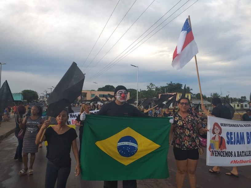 FOLHA DE MAUÉS (AM) – Vestidos de preto com faixa e cartazes professores da rede publica estadual de ensino do município de Maués (267 km da grande Manaus) saem nesta sexta-feira (03) em protesto pelas ruas da cidade cobrando respeito do Governador Wilson Lima pela Categoria, que continua a breve em todo o Amazonas cobrando 15% para melhoria salarial.