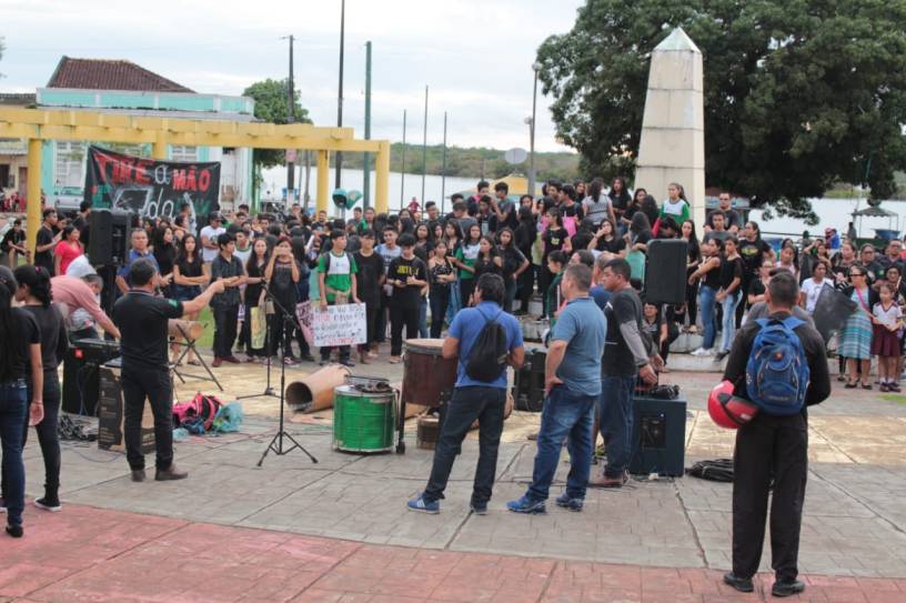 FOLHA DE MAUÉS (AM) – A praça da igreja matriz da Imaculada Conceição no centro de Maués, palcos de grandes fatos históricos importantes da Terra do Guaraná, na tarde desta quarta-feira (15) foi o local da Manifestação LIBERDADE PARA ENSINAR E APRENDER, promovida pelos Professores, alunos do Instituto Federal de Educação, Ciência e Tecnologia (IFAM CAMPOS MAUÉS), com apoios dos professores da Rede Estadual de Ensino que estão greve em prol da melhoria salarial e demais entidades educacionais.