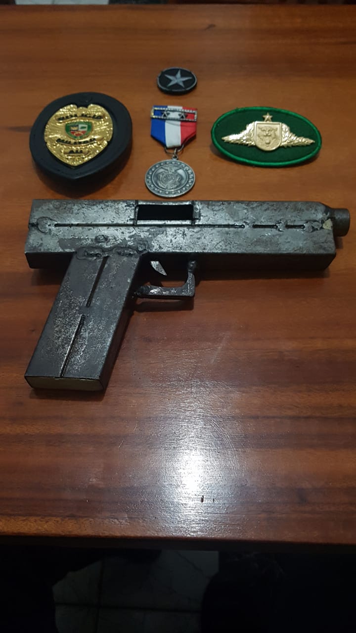 10ª CIPM MAUÉS (AM) – Segundo o capitão Pm Laurenio Santos, comandante da 10ª Companhia Independente da Polícia Militar de Maués – Guardiões do Guaraná, por volta das 01h00 desta terça-feira (16), a Guarnição da Companhia sob o comando do Sgtpm Fonseca e Sgtpm Gilson em patrulhamento pelo bairro Donga Michiles zona norte da cidade, avistaram dois homens em atitude suspeita. De acordo com a Guarnição os dois ao avistarem a viatura da Pm, fugiram e na fuga deixaram para trás uma pistola calibre 40 de fabricação caseira e um terçado.