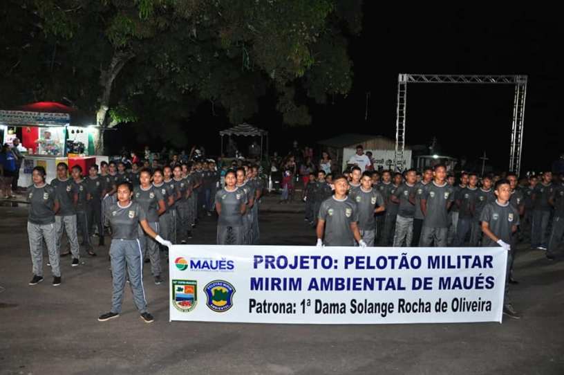 FOLHA DE MAUÉS (AM) – Realizou-se na noite da quinta-feira (1º) na praça da Cel. João Verçosa (a praça da matriz), a formatura de 78 jovens que participam do Pelotão Militar Mirim Ambiental do Município de Maués, com a presença da primeira-dama do município, Solange Oliveira, a patrona do projeto.