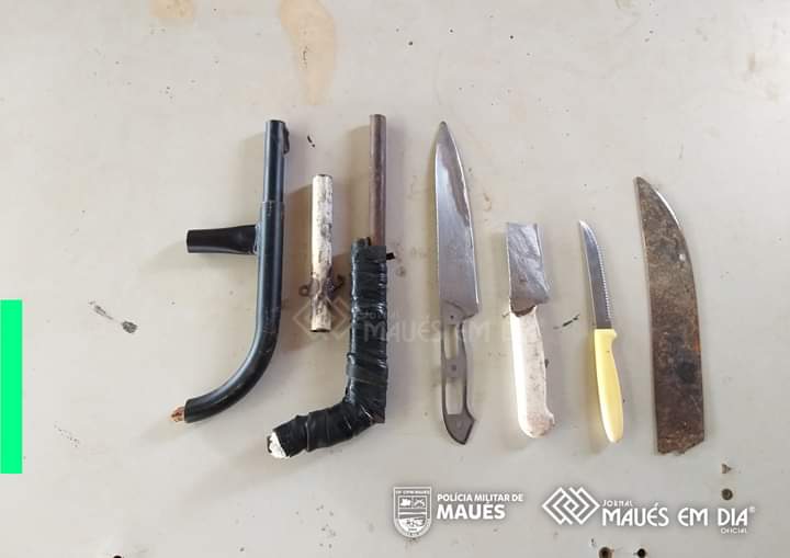 10ª CIPM.G.GUARANÁ.MAUÉS (AM) – Segundo a 10ª Companhia Independente da Polícia Militar de Maués foi realizado durante a Operação Cerol a apreensão de diversas armas de fabricação caseira e facas na manhã desta segunda-feira (05) durante a Operação Cerol, todo o material havia sido abandonado por acusados que ao perceber a chegada da viatura policial fugiram do local deixando suas armas para trás, abordagens e revistas foram feitas durante o patrulhamento ostensivo nos bairros da cidade.