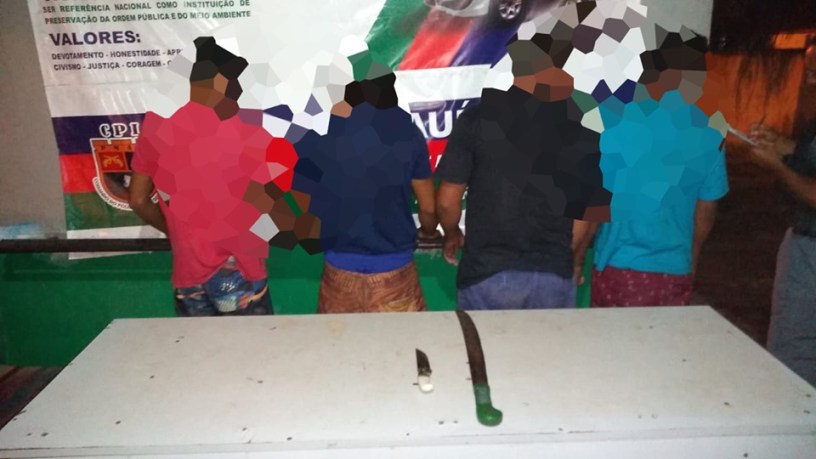 10ª CIPM.G.GUARANÁ.MAUÉS (AM) – A Guarnição da 10ª Companhia Independente da Policia Militar de Maués, durante Patrulhamento Ostensivo na noite de domingo (18) no centro da cidade avistaram quatro adolescentes que ao verem a viatura se aproximando tentaram correr mais sem sucesso, uma abordagem de rotina foi feito e os policiais ao fazerem a revista nos elementos foram encontrados (1) Faca e (1) Terçado, todos foram presos e não apresentaram nenhuma resistência durante a prisão.
