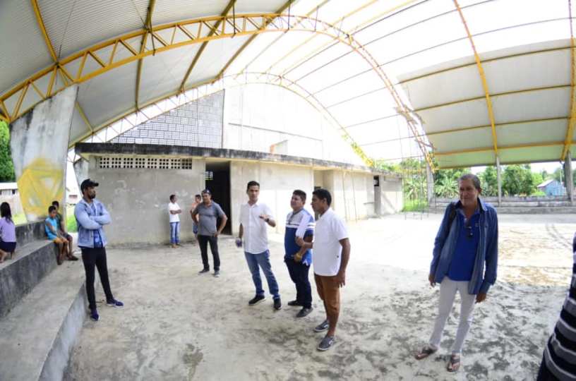 FOLHA DE MAUÉS (AM) – Neste sábado 2, o prefeito de Maués (267 km da grande Manaus), Júnior Leite esteve visitando a zona rural do Município e foi verificar in loco as obras de construção da Quadra Poliesportiva Coberta na comunidade ribeirinha do Bom Jesus do Canela no Rio Apocuitaua, bem como a reforma da igreja da localidade, na qual está ajudando.