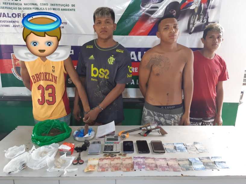 A PMAM através da 10ª Companhia Independente da Polícia Militar – CIPM de Maués (267 km da grande Manaus), prendeu os acusados Douglas César Silva de Oliveira (21), vulgo “dodô”, Francinei Oliveira Souza (22), vulgo “pretinho”, Bruno Andrade Góes (24), vulgo “Marquinho” e apreendeu o menor J.N.A.S de 16 anos.