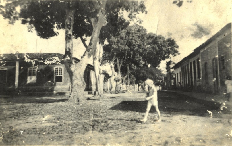 À direta da foto vemos o antigo Prédio da Intendência Municipal de Maués em 1938, no local atualmente está construído a Agência do Banco do Brasil na Avenida Dr. Pereira Barreto no centro da cidade.