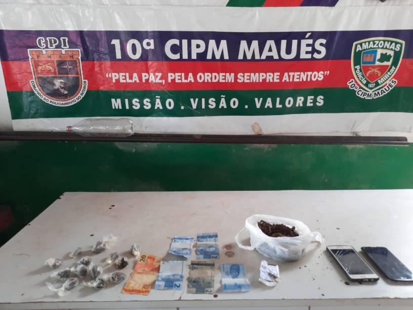 A 10ª CIPM Maués informou que a guarnição de serviço deslocou-se ao local e fez a abordagem aos dois indivíduos denunciados em uma moto Biz na entrada do referido bairro e após entrevista, um deles assumiu ser traficante e informou que durante o dia, a droga estaria escondida na casa de uma mulher, na rua 10 do bairro Senador José Esteses. Os Policiais Militares se deslocaram a referida rua e após revista na residência, encontrou o entorpecente escondido no ralo do banheiro.