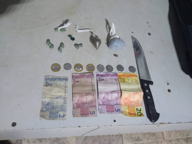 Segundo a 10ª CIPM, a Guarnição de Serviço fez a abordagem em M. S. L. de 25 anos, e foram encontradas com o acusado: