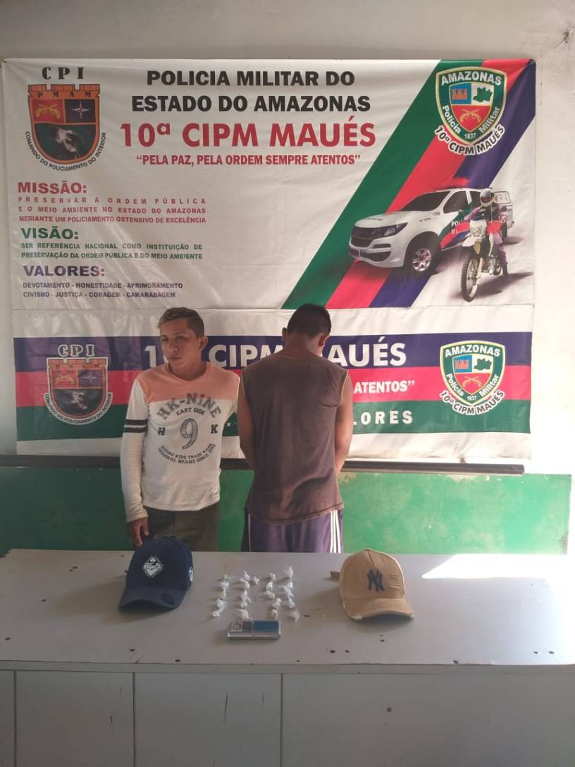 FOLHADEMAUÉS (AM) – A 10ª Companhia Independente da Polícia Militar de Maués (a 267 quilômetros de Manaus), em Patrulhamento Ostensivo de Rotina na Rua Paraíso, Bairro Senador José Esteves zona sul da cidade, fez a detenção na manhã da última terça-feira (07), por volta das 09h10min, de dois acusados pelo crime de tráfico de drogas.