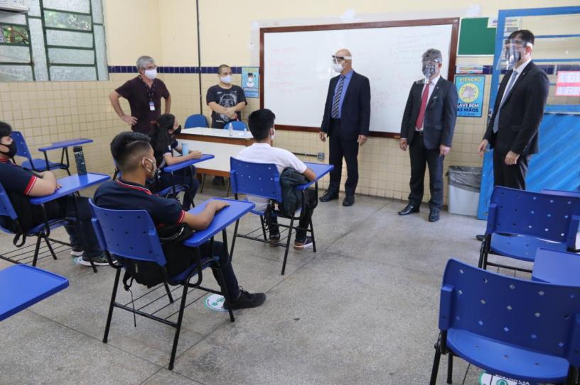 Aproximadamente 100 mil estudantes retornaram às salas de aula. A fiscalização seguirá nas próximas semanas, para acompanhamento também das escolas de ensino fundamental, onde o retorno das atividades presenciais está previsto para o dia 24 de agosto. Nesta segunda-feira, foram fiscalizadas a Escola Estadual Sant’Ana, 6º Colégio Militar da Polícia Militar e o Centro Educacional de Tempo Integral (Ceti) João dos Santos Braga.