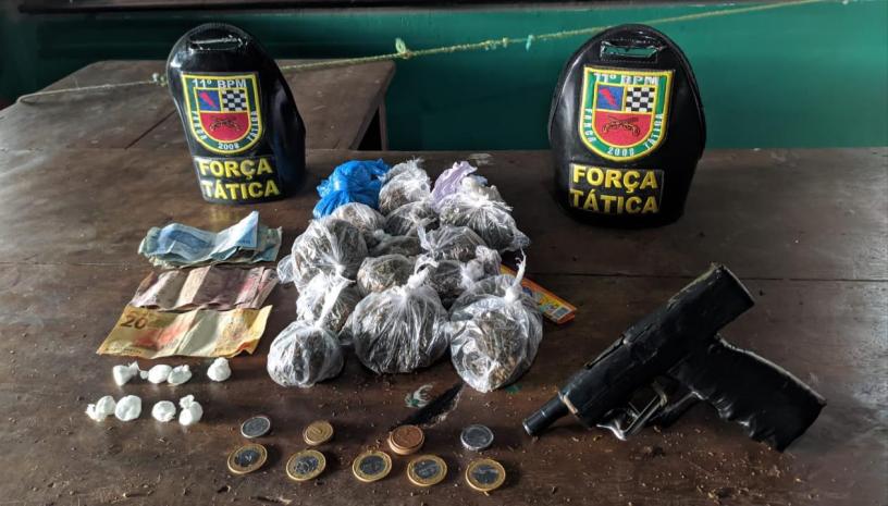 FOLHA.DE.MAUÉS (AM) – Segundo a 10a COMPANHIA INDEPENDENTE DA POLÍCIA MILITAR DE MAUÉS – CIPM (a 267 quilômetros de Manaus), através da Equipe de Força Tática do 11o BPM/Parintins que está reforçando o policiamento na Terra do Guaraná, prenderam na tarde deste domingo 24, dois homens acusados de Tráfico de Drogas. De acordo com 10a CIPM, a Equipe recebeu uma Ligação Via Linha Direta informando que no Bairro Senador José Esteves II zona sul da cidade, havia dois homens fazendo a comercialização ilegal de entorpecentes, a referida Equipe se deslocou até o local denunciado e conseguiram capturar os dois. A PM informou que durante a Ocorrência os acusados foram Abordados e Revistados, sendo encontrado em posse dos Indivíduos, dezessete (17) Poções de Substância Entorpecente Supostamente (Maconha), (08) Trouxinhas de Substância Entorpecente Supostamente (Cocaína), (01) Arma de Fogo (Fabricação Caseira), e R$ 73,00 (em espécie e Moedas).