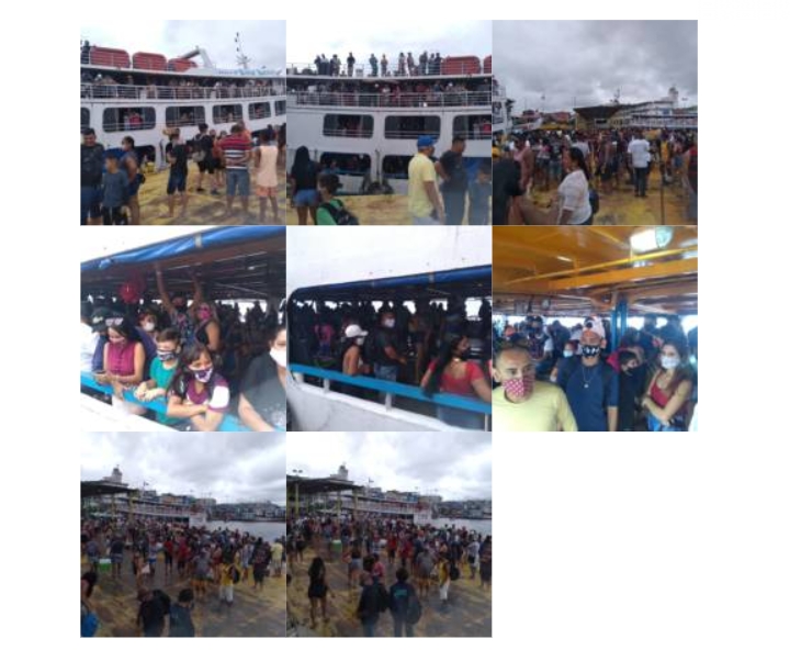 Dentro da embarcação, a maioria dos presentes estavam sem mascaras, em cenário visto também na área de espera do Porto de Manaus. A capacidade da embarcação seria de 910 pessoas, estando bem acima dos 50% permitido.