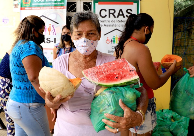 O kit contendo abóbora, farinha de mandioca, banana, castanha-do-Brasil, laranja, melancia, macaxeira e tucumã, que foram distribuídos, são produzidos pela agricultura familiar. Estes pequenos agricultores fazem parte da cooperativa, que tem convênio ao Programa de Aquisição de Alimentos (PAA), que tem como objetivo incentivar a produção local, por meio da aquisição e destinação de alimentos.