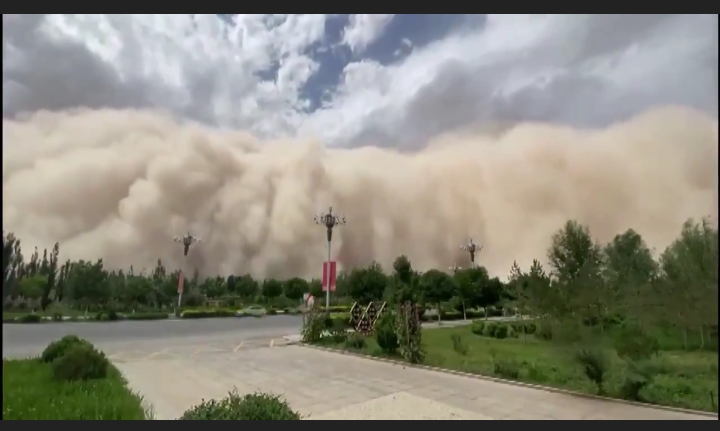 Dunhuang – Um impressionante “muro” de areia de 100 metros de altura envolveu uma cidade à beira do deserto de Gobi, no noroeste da China, com imagens que pareciam tiradas de um filme-catástrofe.
