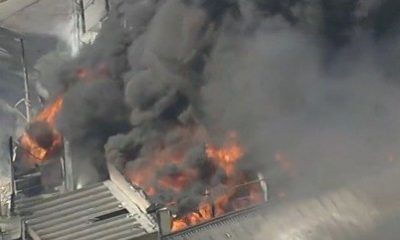 Há pequenos focos de incêndio, espalhados pelos galpões, que ficam na rua das Antilhas, número 571, segundo imagens captadas pelo helicóptero da Record TV.