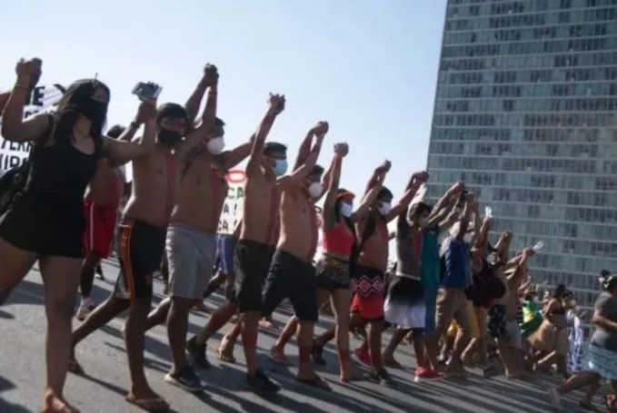 A manifestação dos indígenas teve início por volta das 14h. Eles seguiam pela via S1 ocupando três faixas da via. Na altura do Ministério da Economia, os indígenas começaram uma discussão com trabalhados que instalavam cartazes alusivos ao 7 de setembro. Um grande grupo de indígenas foi em direção aos homens com o intuito de agredi-los. Uma equipe da PMDF tentou intervir para impedir as agressões. Contudo, os indígenas agrediram os policiais e os trabalhadores. Dois policiais e um dos trabalhadores tiveram ferimentos leves e não precisaram de atendimento médico. O reforço policial chegou e conseguiu controlar a situação. Os policiais e a outra vítima foram levados à 5ª Delegacia para registro da ocorrência. A manifestação continuou e os indígenas estão agora na Praça dos Três Poderes na frente do STF“