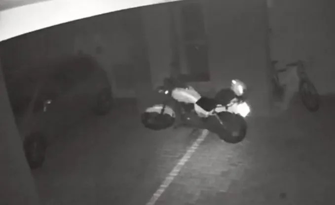 Um vídeo do circuito interno de segurança de um condomínio de Londrina, no Paraná, registrou o momento em que uma motocicleta liga sozinha e anda por alguns metros até bater em um carro, que era de um morador que morreu dias antes.
