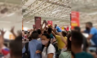Segundo o cliente que filmou a disputa, “Todas as peças estavam custando 10 reais, o que normalmente era 40 reais. Então, compensou. No vídeo parece que estão dando de graça, mas era promoção mesmo. Só que tudo estava bem barato, principalmente bebidas”, disse.