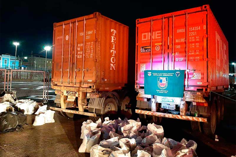 O Batalhão de Policiamento Ambiental informou que recebeu denúncia anônima sobre a carga. Ao vistoriar os contêineres, encontrou sacos plásticos com o minério. O produto foi avaliado em R$ 2,4 milhões.