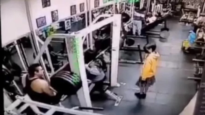 As imagens fortes mostram um homem checando os pesos enquanto a mulher, que não teve o nome revelado, aguarda com a filha. No momento seguinte, ela se dirige ao aparelho e, na primeira tentativa de erguer a barra, é empurrada com força para baixo, atingida no pescoço.