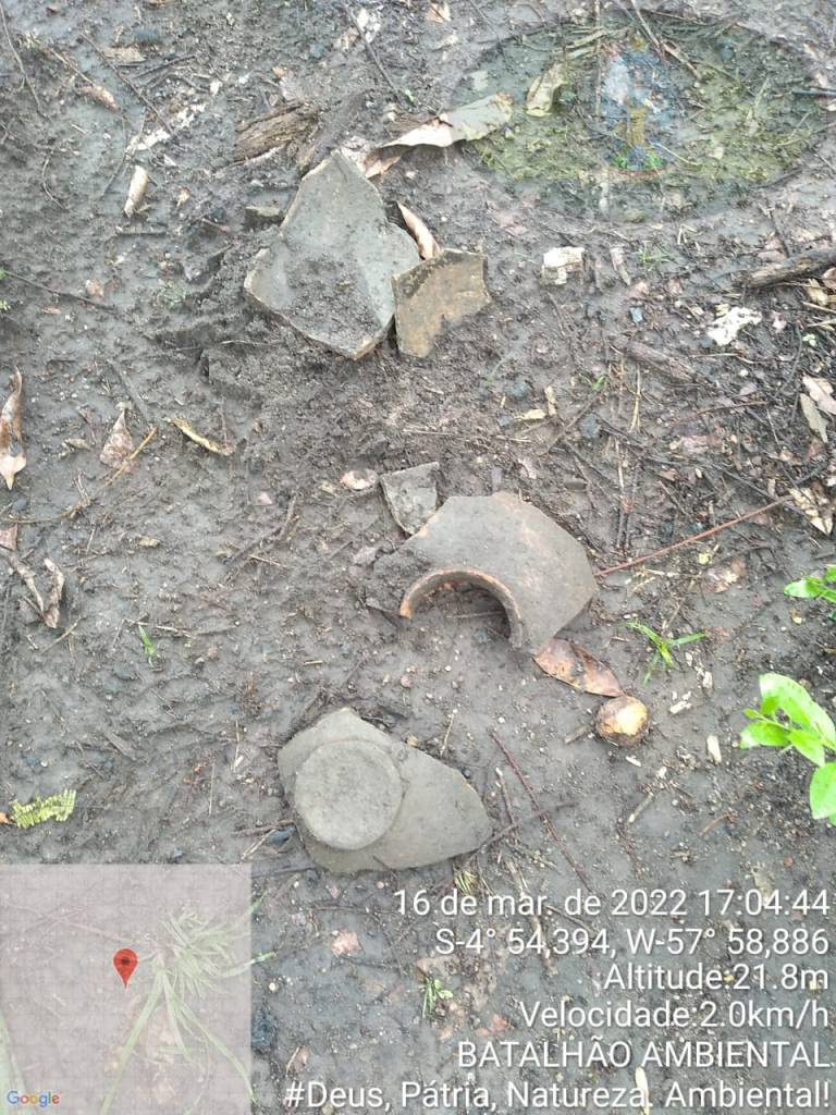 Segundo o Batalhão Ambiental durante a Operação foram encontrados no referido sítio, Cerâmicas, Ponta de Flexas, Machadinhas e Amuletos. De acordo com informações do Arquivo do Site Folha de Maués Comunicações, fornecidas pelo memorialista Alcinei Pimentel Carneiro, as peças encontradas seriam de sociedades indígenas extintas há séculos por ocasião da Invasão Lusitana na Região Amazônica. Conforme dados históricos do Memorialista Pimentel Carneiro, na região do Rio Maués Açú e Abacaxis viveram diversas etnias indígenas como: Mutayus (fabricantes do Machado de pedra), os Aponariás, Araras, Iruris, Juqui, Kuriató, Maraguás, Sara, Tupinawá, Sapopé e outras. A Equipe do Batalhão Ambiental da PM fotografou os Artefatos e encaminhou ao Órgão competente para as devidas providências.
