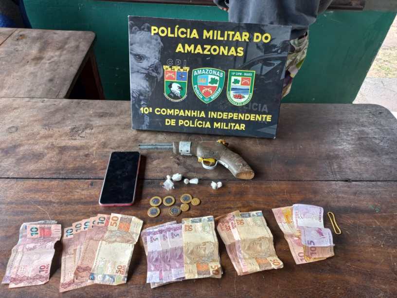 Durante a Ocorrência foram encontrados, algumas Poções de Substâncias Entorpecentes, Dinheiro em Espécie e (01) Arma de Fogo (Fabricação Caseira). Diante dos Fatos os Materiais Apreendidos foram encaminhados para a 48ª Delegacia Interativa de Polícia Civil no centro de Maués, para serem realizados todos os Procedimentos Cabíveis.
