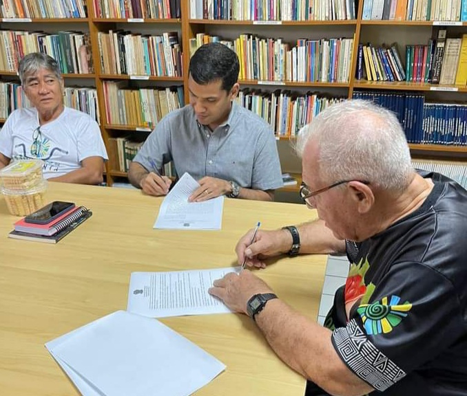 FMC – Na manhã desta quarta-feira 20, o prefeito do município de Maués, Júnior Leite esteve reunindo com Bispo Auxiliar Emérito da Arquidiocese de Manaus, Dom Mário Pasqualotto para assinatura do termo de colaboração com a Fazenda da Esperança Nossa Senhora Piedade de Maués, localizada no Rio Maués Miri zona rural do Município.