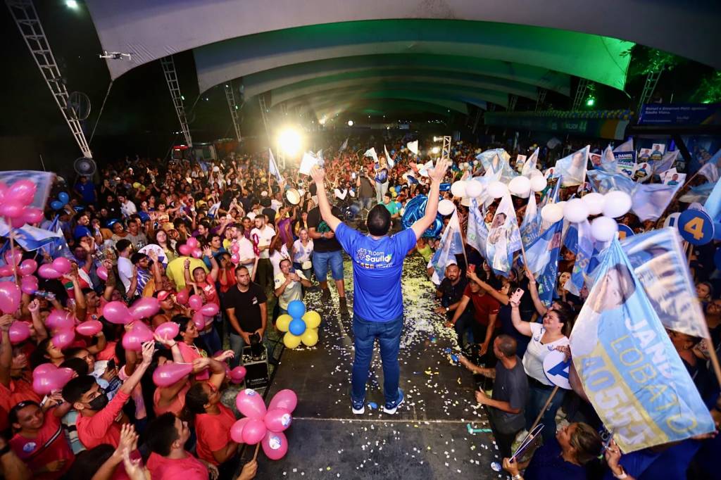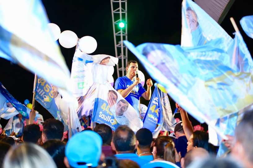 Com a presença de mais de 10 mil apoiadores, o deputado Saullo Vianna (UB) realizou, em Manaus, o lançamento oficial da sua campanha ao cargo de deputado federal, na noite desta quinta-feira (25). O evento foi realizado no Copacabana, zona oeste da cidade, e contou com a presença do prefeito de Manaus, David Almeida, e o candidato a vice-governador, Tadeu de Souza, além de lideranças e autoridades dos municípios do Amazonas.