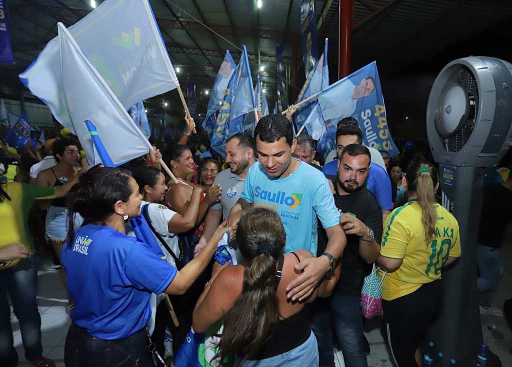 A 20 dias das eleições, o deputado Saullo Vianna (UB) foi recebido com festa por milhares de pessoas que apoiam sua candidatura de deputado federal, no bairro Jorge Teixeira, zona leste de Manaus, na noite desta segunda-feira (12). A reunião também contou com a presença do governador Wilson Lima e da deputada estadual Joana Darc, ambos concorrendo à reeleição. Saullo apresentou suas propostas para atrair investimentos em saúde, educação e geração de emprego e renda.