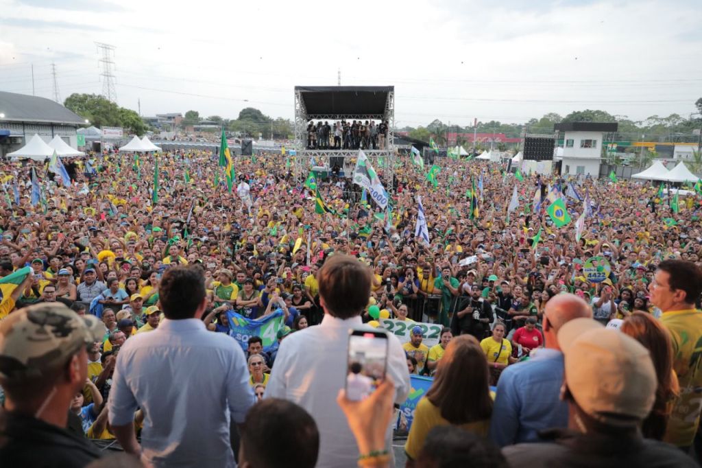 “É muito importante essas escolhas. No dia 2 de outubro nós temos que decidir. E a decisão tem que ser a melhor possível. Aqui no estado do Amazonas eu fico com o Wilson Lima pela reeleição. E fico também com o coronel Menezes para o Senado”, disse Bolsonaro no comício, que reuniu cerca de 30 mil pessoas.