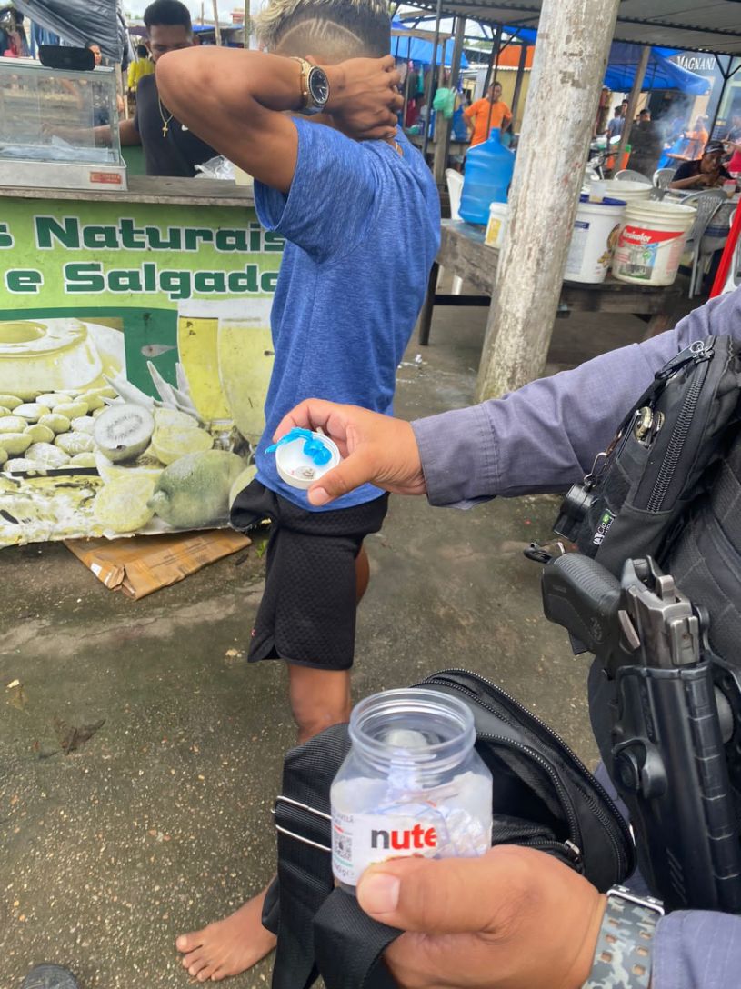 FMC – Policiais Militares da 10ª Companhia Independente de Polícia Militar – CIPM Maués, realizaram a detenção na manhã desta terça-feira 31, de um menor em posse de Substância Entorpecente na Rua Coronel Tito Leão, Centro zona oeste da Cidade.