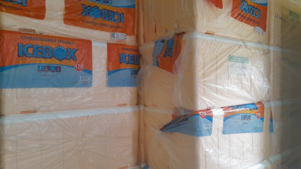 Na Ação do FPS desta segunda-feira 17, feita pela Colônia, 25 kits com isopor, caçapa, pano de malhadeira e motores repletas foram entregues aos pescadores que estão em dia com a Instituição.