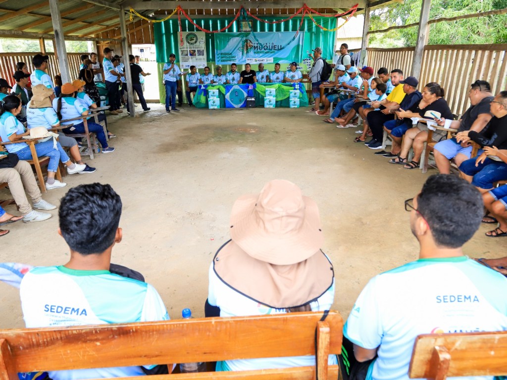 Os comunitários das comunidades que fazem parte do projeto, receberam materiais como caixas de isopor e caixas d’água para o processo de manejo.