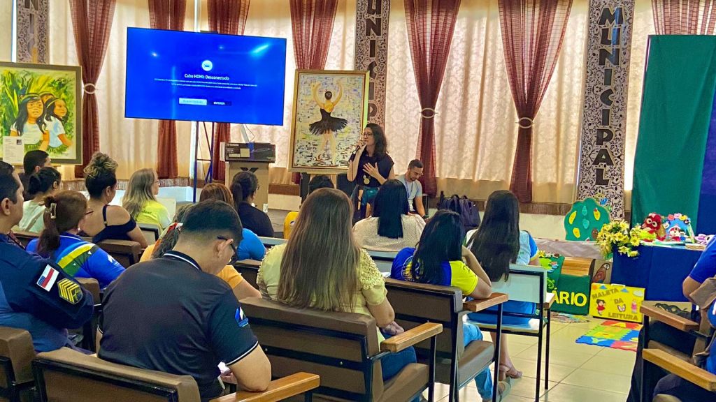 A defensora pública Márcia Mileni, do Polo Rio Negro-Solimões da DPE-AM, foi uma das palestrantes da formação “Violação de direitos da criança e da adolescência – fluxograma e protocolo de atendimento nas escolas municipais”, promovida pela Secretaria Municipal de Educação e Cultura (Semec), no Teatro Municipal Casa da Cultura, nesta segunda-feira (6).