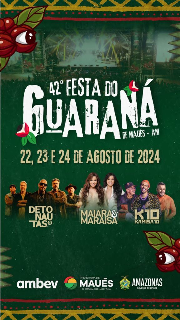 A Tradicinal Festa do Guaraná do Município de Maués a 258 quilômetros da grande Manaus, realizada desde 1979, primeiro evento cultural Genuinamente Amazonense, na 42ª edição deste ano, em razão do alerta da Defesa Civil do Estado é antecipada para os dias 22, 23 e 24 de agosto deste ano. O evento que era realizado anualmente em novembro em razão da Colheita do Guaraná, em 2023 passado, não foi realizado devido a Estiagem que castigou os rios da região, impossibitando a navegação das embarcações regionais ao município.