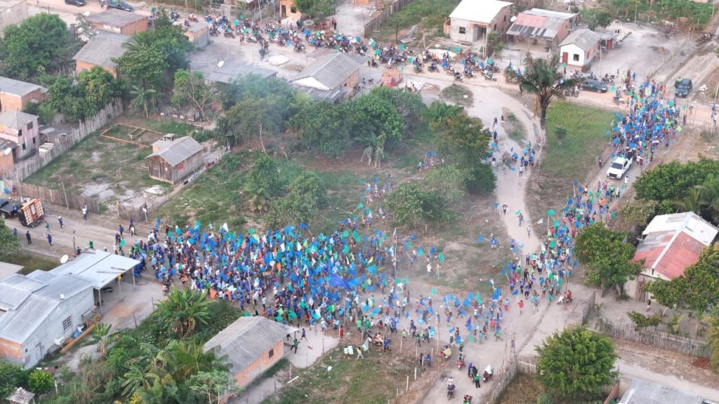 Nas imagens é possível observar apoiadores com bandeiras de cor azul, percorrendo as ruas dos bairros Senador José Esteves I e II, além do bairro Nova Esperança.