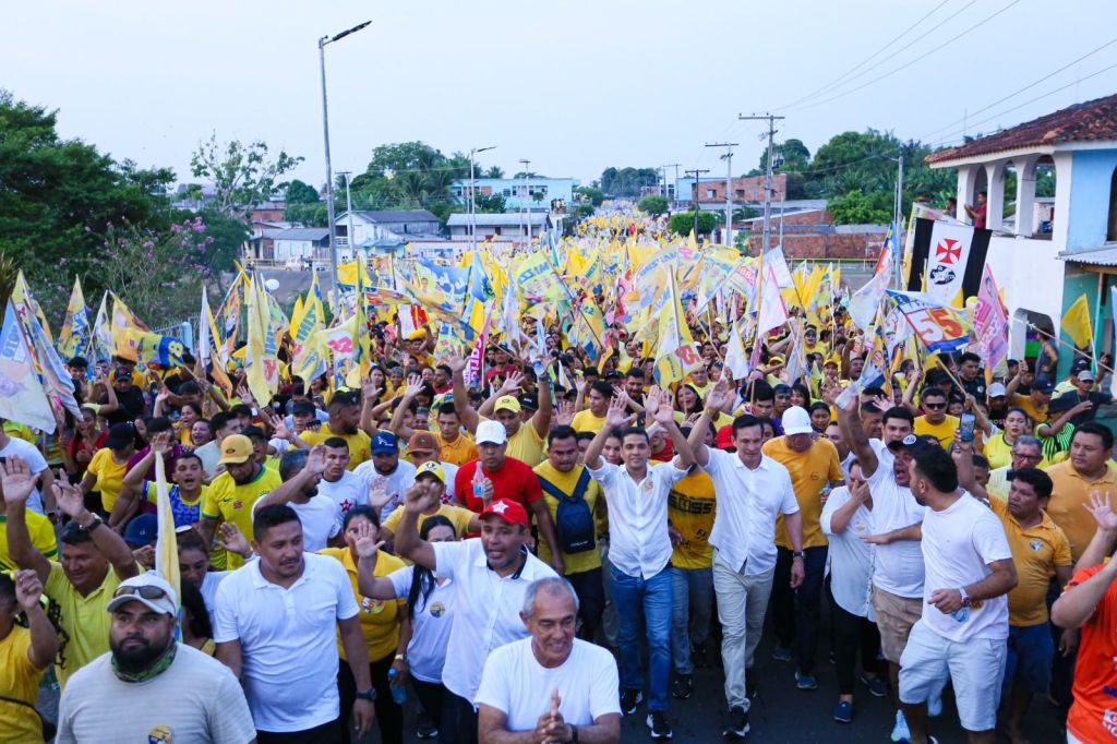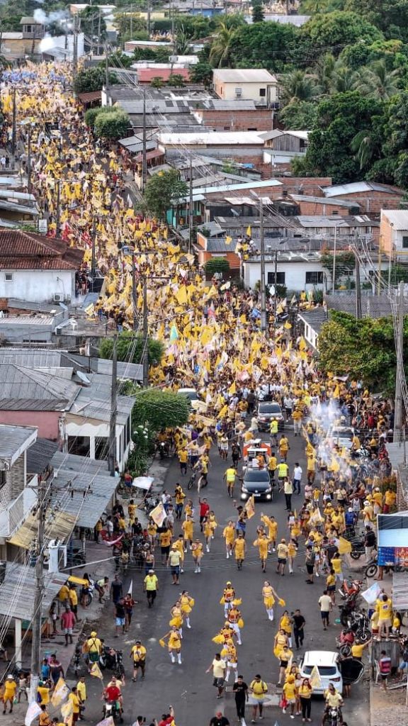 Estima-se que mais de 16 mil apoiadores a pé, em motocicletas, de carros e camionetes, colorindo da cor Amarelo as ruas da Capital do Guaraná no início da noite deste domingo.