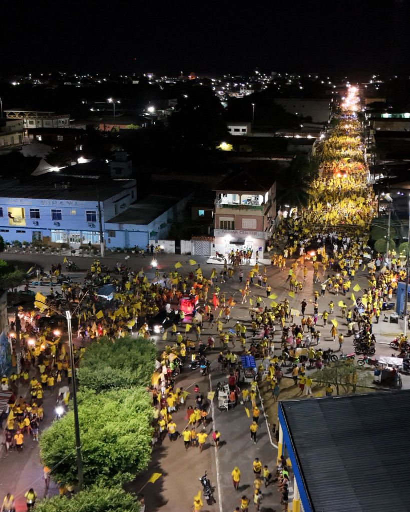 A grande multidão acompanhou Mazzini, de camisas, bandeiras e estandartes da cor Amarela, saindo em passeata da frente do Ginásio Poliesportivo Dr. Deodato de Miranda Leão, Rua São João no bairro Ramalho Júnior na zona norte da Cidade. A alegria comandou a manifestação democrática em apoio ao Candidato Mazzini e seu vice Lulinha. E tomou conta de ruas e avenida da Capital do Guaraná, cujos apoiadores cantavam as manchinhas de campanha do referido candidato.