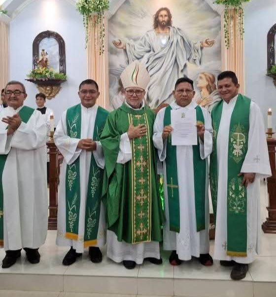 A posse Canônica do Vigário Paroquial Padre Antônio Santos da Silva da Paróquia São Pedro Apóstolo do Município de Maués, foi presidida no último domingo (23) pelo Bispo Emérito da Diocese de Parintins, Dom Giuliano Frigenni, estiveram presentes na cerimônia realizada na igreja matriz de São Pedro Apóstolo, padre Dorival Nascimento – Vigário geral da Diocese, padre Marcelo Afranio – Vigário Paroquial da Paróquia Nossa Senhora de Lourdes e Diácono Antônio da Paróquia de Nossa Senhora da Conceição de Maués.
