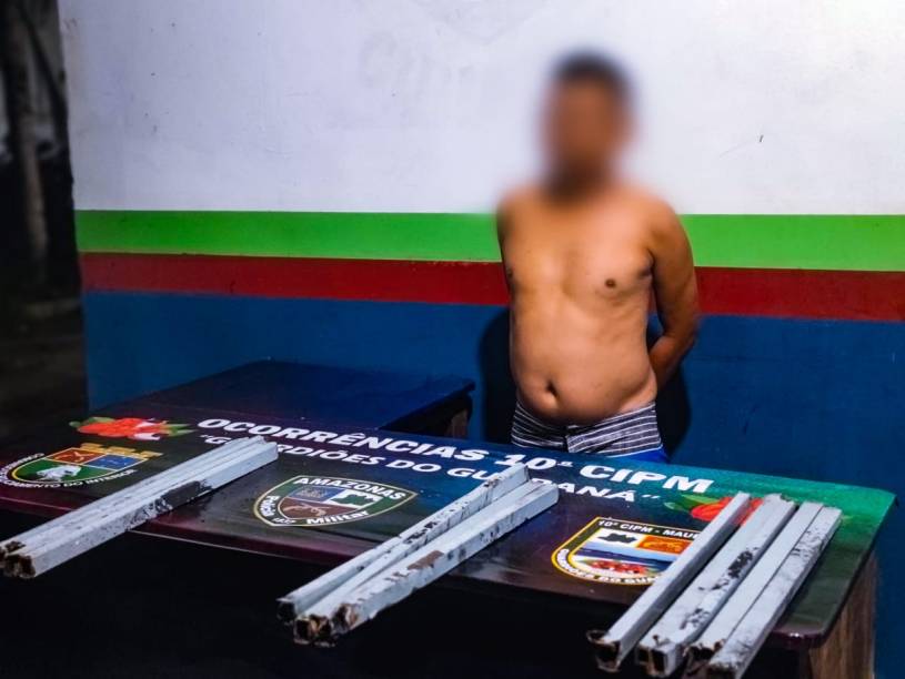 A Companhia Independente da PM, informou que na madrugada deste domingo (2), a Guarnição de Serviço em Patrulhamento Ostensivo, recebeu uma Denúncia Via Linha Direta informando, que um Indivíduo estaria realizando o Furto de Barras de Ferro do Portão da Agência do Banco do Brasil na avenida Dr. Pereira Barreto, localizado no Centro de Maués.