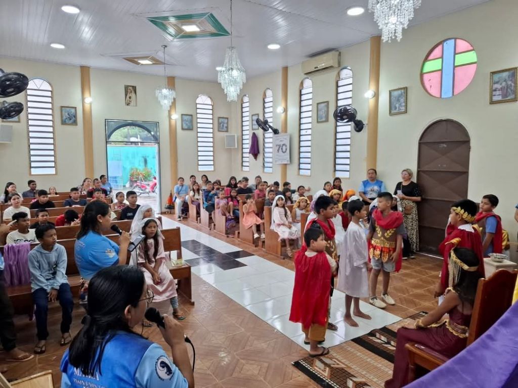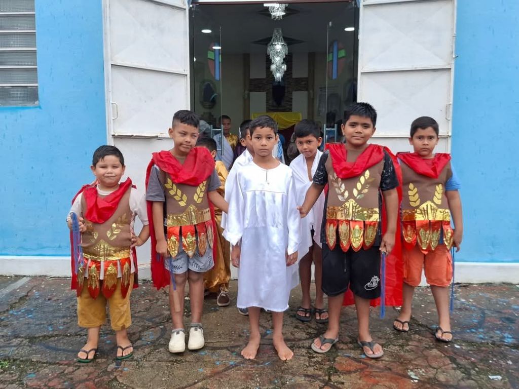Iniciativa dos catequistas, Coordenadores e famílias da Comunidade Católica Nossa Senhora Rainha da Paz vinculada a Paróquia São Pedro Apóstolo do Município de Maués, a 258 quilômetros de Manaus, organizaram com as crianças da comunidade a Via Sacra Infantil no último sábado (12), refletindo sobre a Paixão, Morte e Ressurreição de JESUS CRISTO, Filho de DEUS.