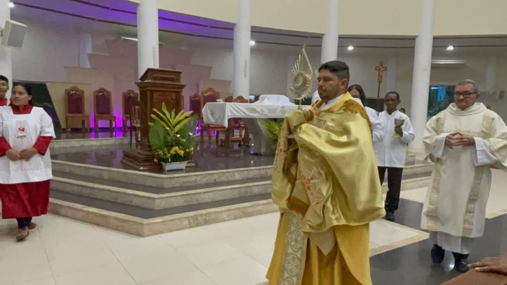 Ao final da Santa Missa, em clima de silêncio e profunda adoração, foi realizado o Translado do Santíssimo Sacramento, conduzido em procissão até o altar da reposição, onde a comunidade é convidada a permanecer em vigília e oração, acompanhando Jesus em seu momento de entrega e amor infinito.