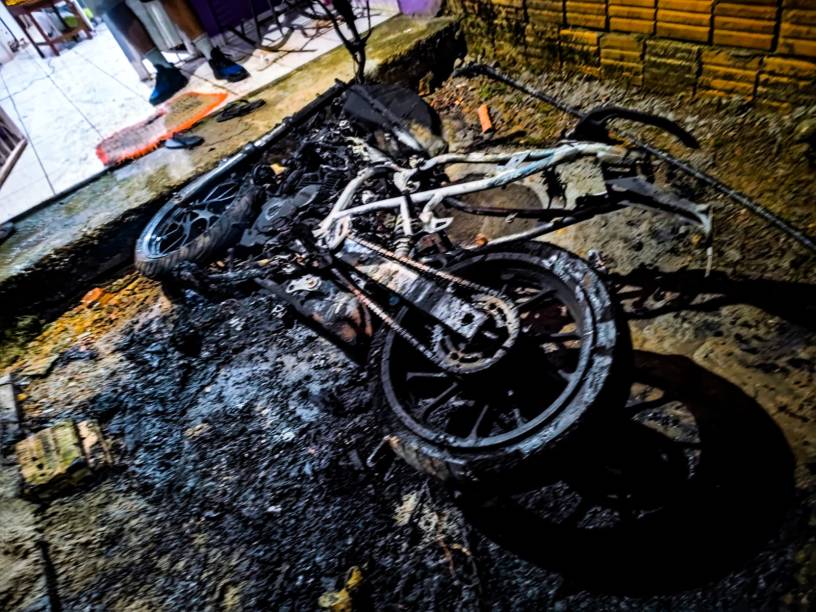 Segundo a 10ª Companhia Independente da PM, a Guarnição de Serviço recebeu uma Denúncia Via Linha Direta, informando que um homem havia ateado fogo em sua motocicleta dentro da residência onde mora com seus pais. A Equipe deslocou-se ao local denunciado e Contratou a Veracidade da Informação.