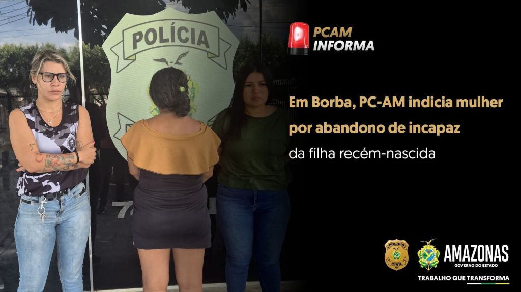 A Polícia Civil do Amazonas (PC-AM), por meio da 74ª Delegacia Interativa de Polícia (DIP) de Borba (a 151 quilômetros de Manaus), indiciou, neste sábado (02/08), uma mulher, de 23 anos, por abandono de incapaz contra sua filha, uma recém-nascida de dois meses.